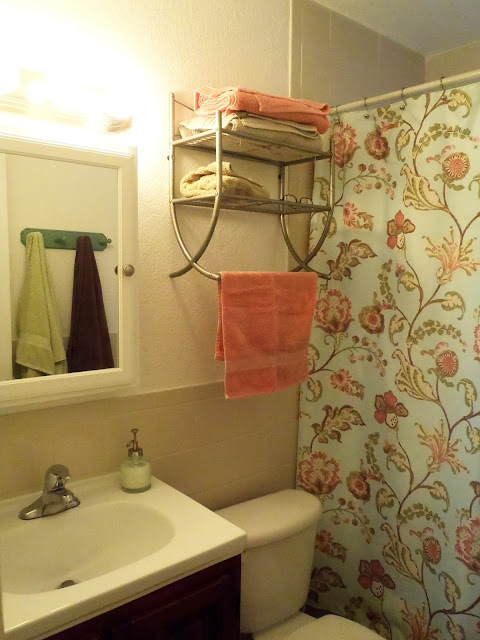 As far as the rest of the bathroom goes, I have a little metal shelf installed to hold towels but would really like to replace that with some floating shelves, perhaps the lack shelves from Ikea?