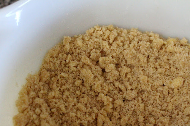 So instead of pea-sized butter pieces, you are going for smaller pieces. I guess I could compare them to rice sized? The key is to combine it to the point where when you pinch some of the crumble together, it lightly sticks together but will break apart again once you roll it between your fingers.