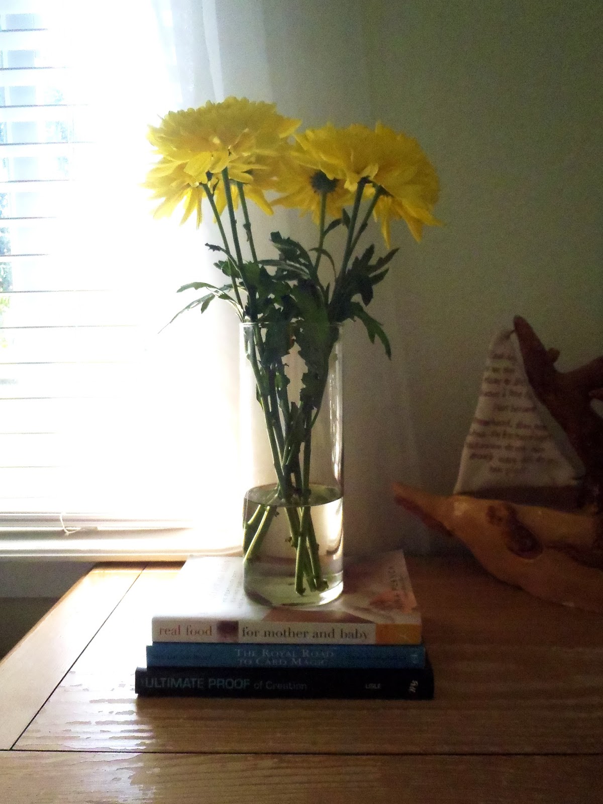There is something about flowers in the bedroom. I have never put them there before and I am not sure why. Seeing flowers when I first wake up in the morning just puts a smile on my face. Not that a screaming hungry baby doesn’t already do that… Okay, who am I kidding. Is there a mother that smiles when she wakes up to a baby screaming? Smiles come later when she is latched on and guzzling down some milk. Isabelle is an extremely good sleeper though, so I’m not complaining. If I was her age and didn’t eat for nine hours I would beĀ hollering too.