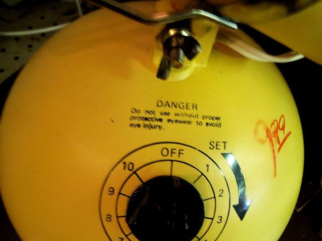 Seriously, what is this thing? In case you can’t make out those blurry words, it says, “Do not use without proper protective eyewear to avoid eye injury.” Really? That looks like some scary stuff.