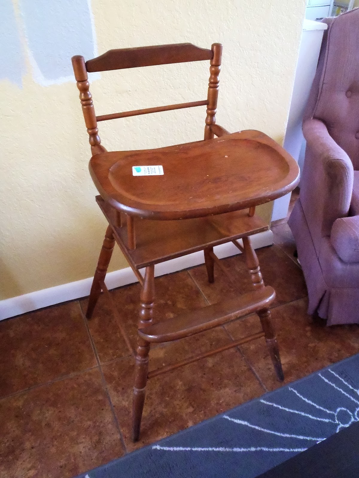 Update! Check out what I just scored at the thrift store I visit the most. Score! It is a wooden high chair, albeit in a rough shape but nothing a little love won’t find.