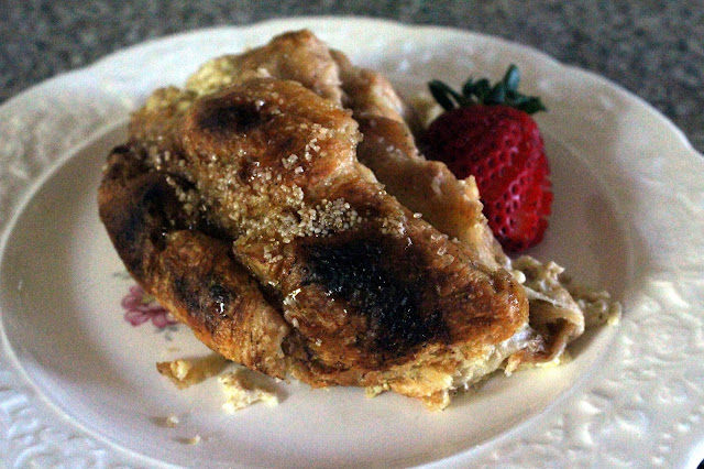 I adapted this recipe to work with my busy I have kids that want to eat now schedule. So the night before, whisk up the ingredients and poor them over four smooshed croissants. For your information, I do consider smooshed a word.