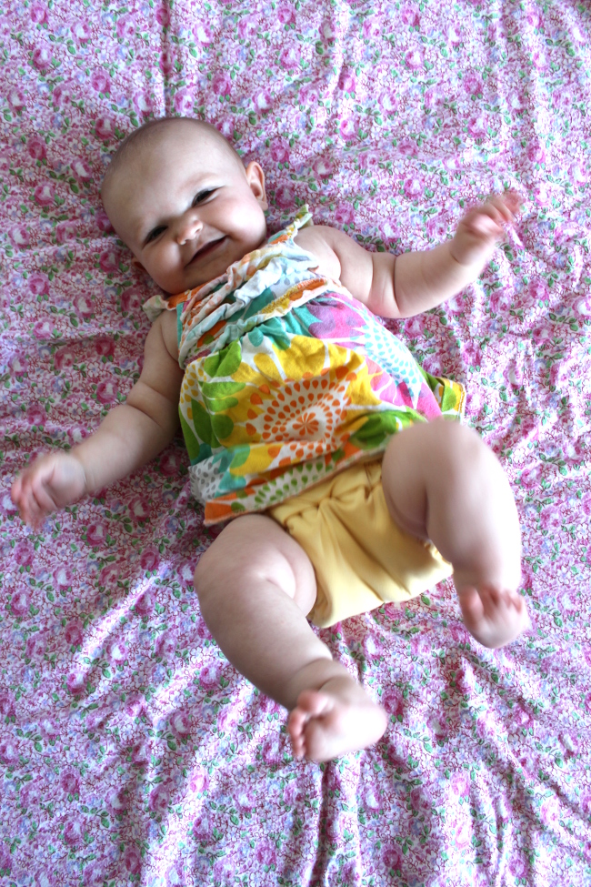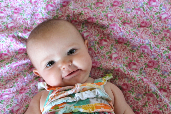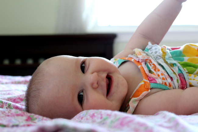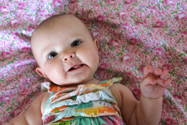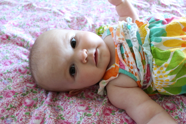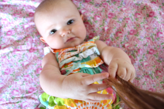 She is doing so good sitting up on her own, and even says “ma-ma,” which of course melts my heart. She is also blurting out a lot of “blah-blah-blah’s,” I’ll take credit for that.