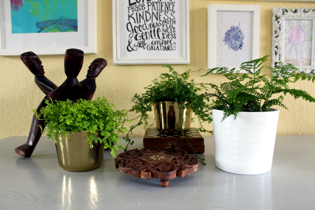 I already had some pots laying around the house, so they are already settled into their new homes (the white pot is from Ikea, and the gold ones are decorative bowls from Target).