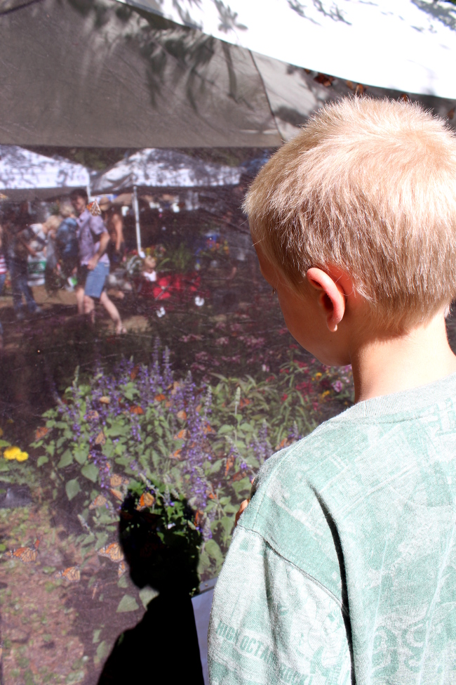 What is great about this event is all the deals to be had. I saw air plants for $1 a pop, and Elijah bought himself a succulent for only $1 as well. The butterfly garden booth is known for giving away a potted flower to children, so this year we scored two, and the city gives away two bags of mulch per car.