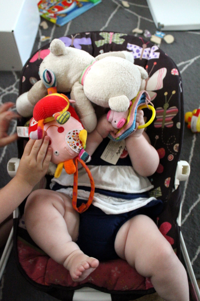So, it has come to my understanding that these baby things like it best when you place any unwanted toys on top of their squishy bodies.